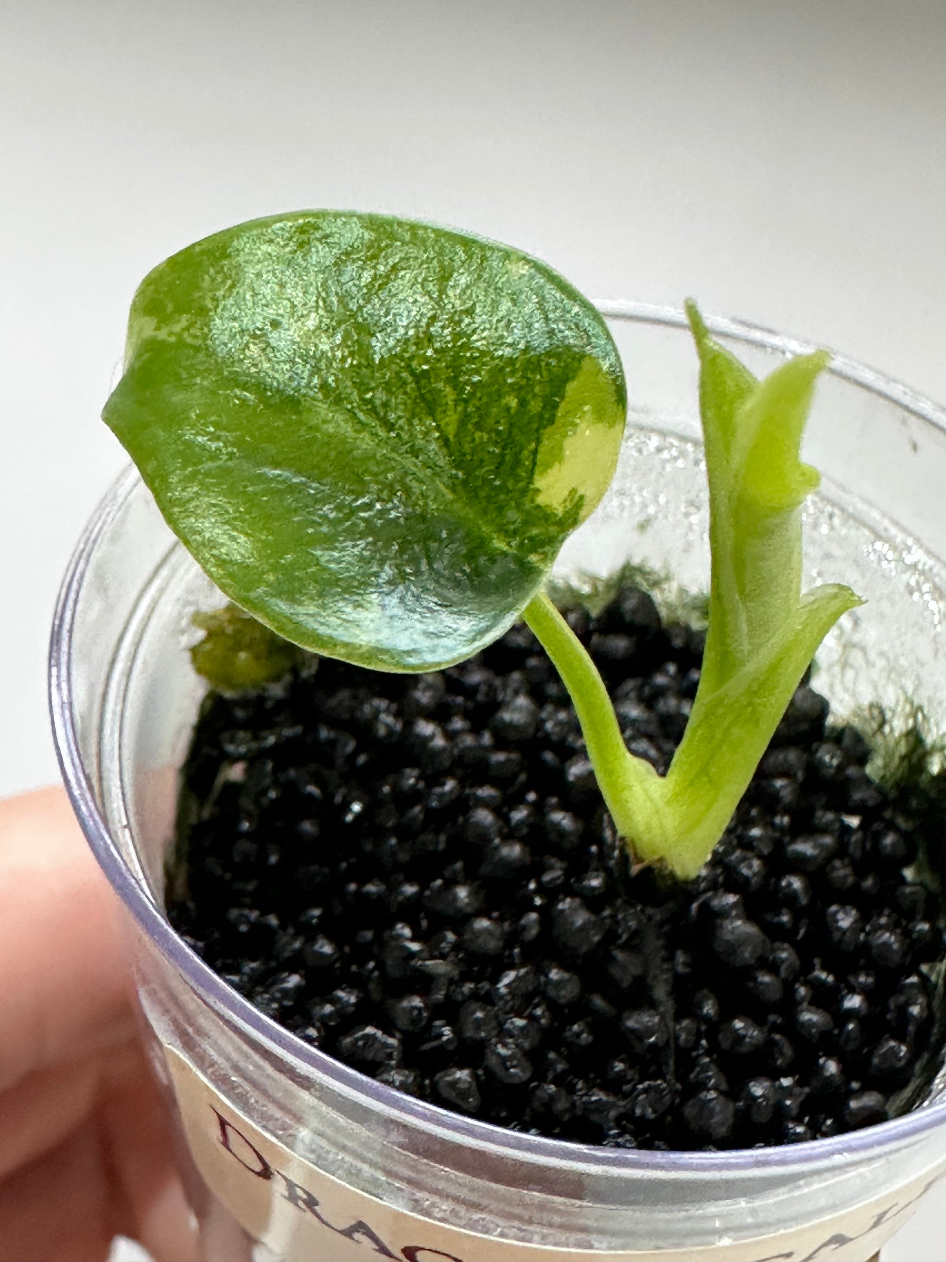 This rare variegated variety captivates serious enthusiasts with its unique combination of the beloved Dragon Scale's textured foliage and extraordinary golden variegation patterns. The luminous yellow sections create mesmerizing displays where no two leaves are identical, while the dramatic contrast between golden patches and the deep green base adds an extra dimension of visual interest that transforms the classic scale-like appearance into something truly extraordinary.