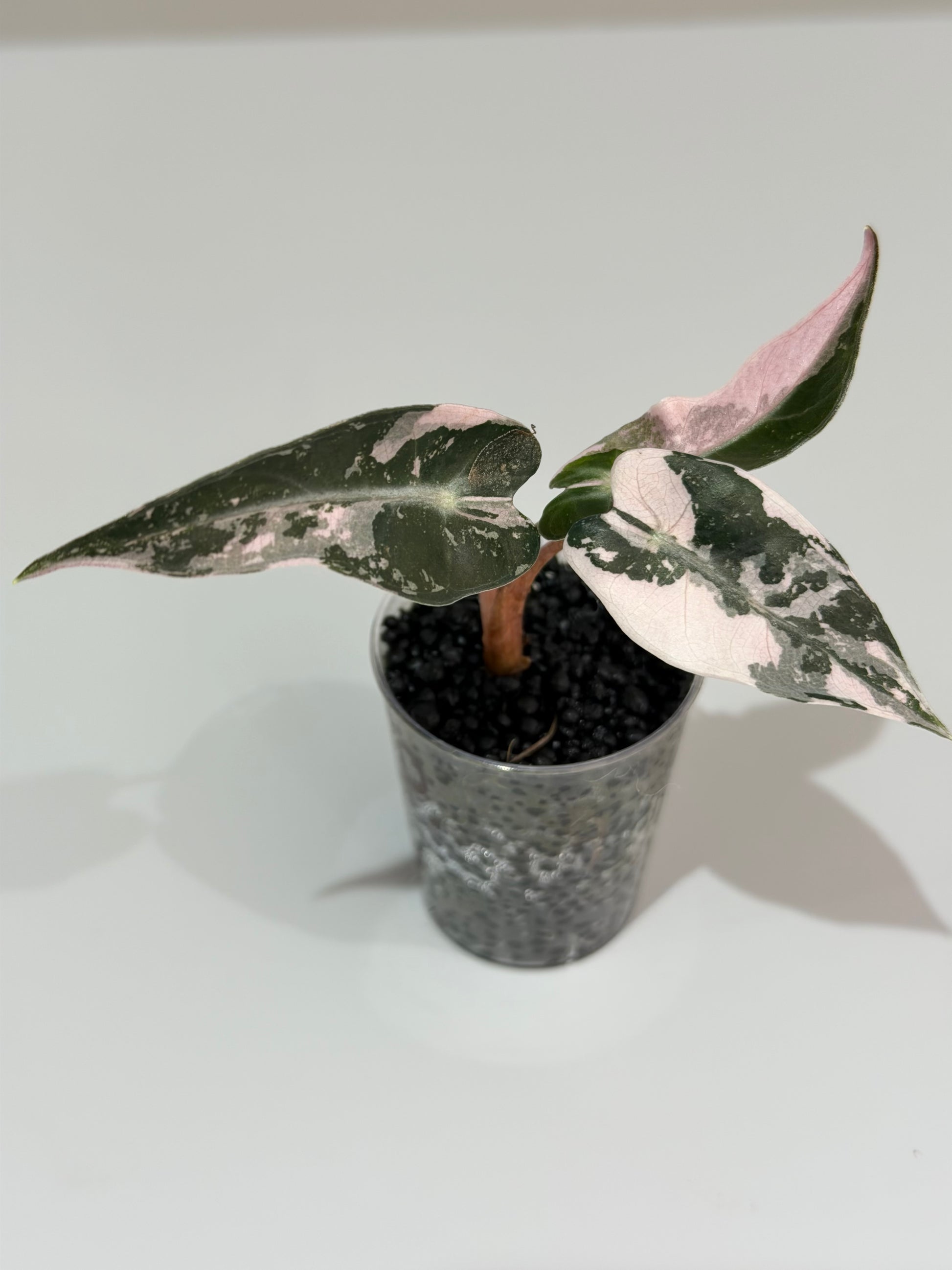 Key Features: • Highly sought-after and exceptionally rare variegated variety • Elongated arrowhead-shaped leaves with unique patterns • Extraordinary mix of deep green, creamy white, and soft pink • Each leaf displays one-of-a-kind pastel pink splashes • Compact Bambino size perfect for indoor environments • Stable pink variegation extremely difficult to achieve • Grail plant status with limited worldwide availability • Southeast Asian heritage with exotic tropical beauty