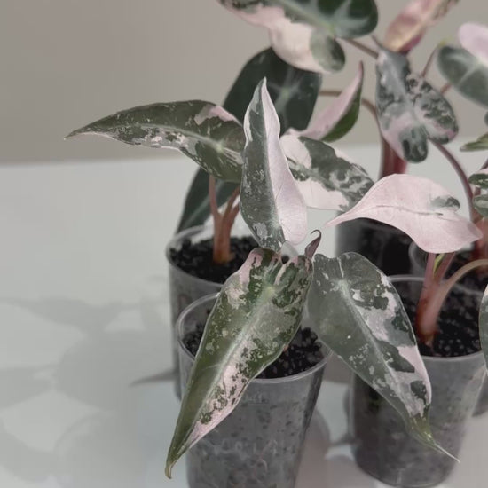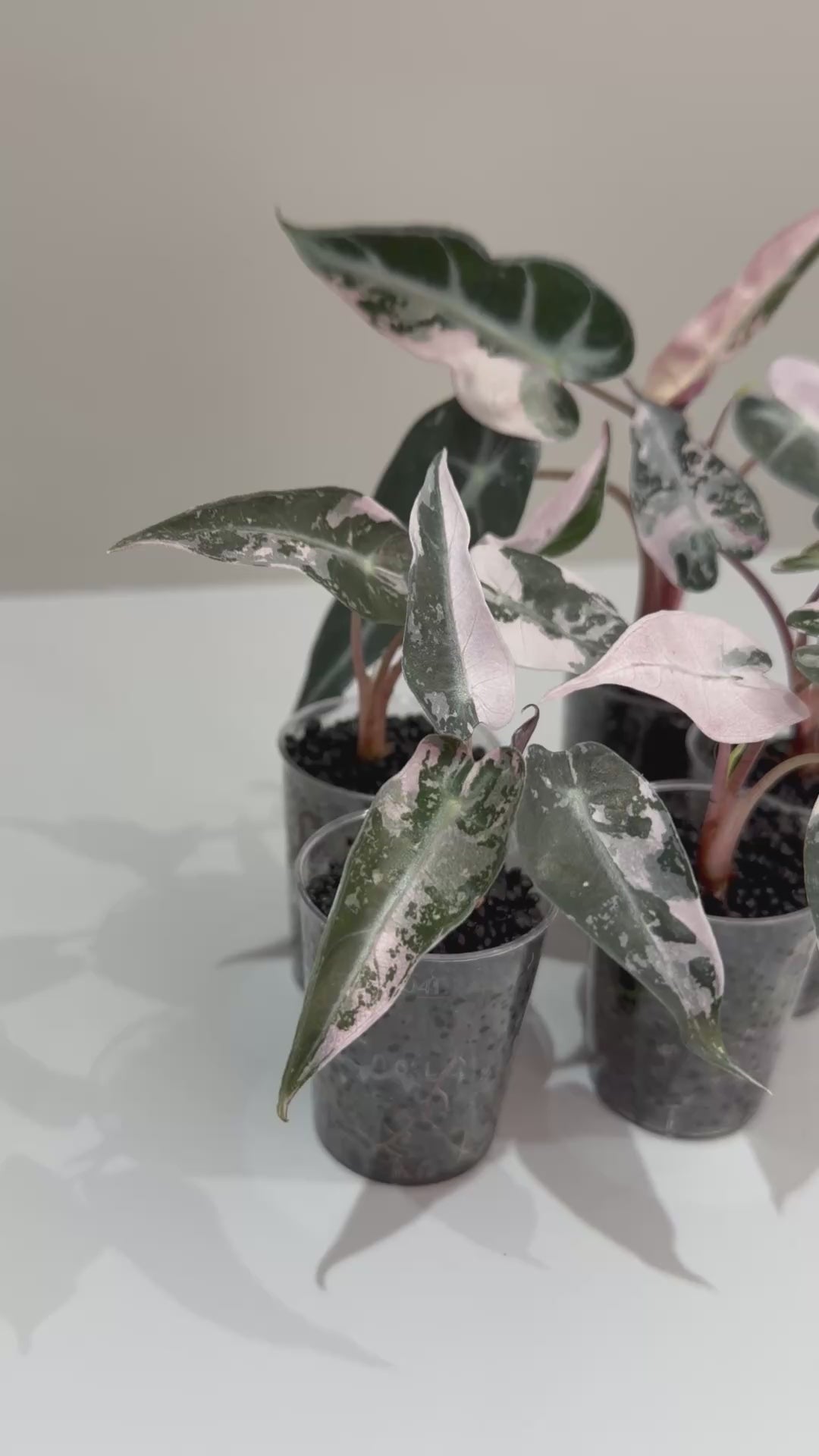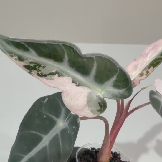 Ideal for dedicated collectors seeking manageable indoor exotic beauty, the Bambino variety offers the prized appearance of larger Alocasias in a more compact, indoor-friendly form. With origins in tropical rainforests across Southeast Asia and the extraordinary addition of stable pink variegation, this grail collector's houseplant has quickly become one of the most sought-after specimens in the rare plant world.