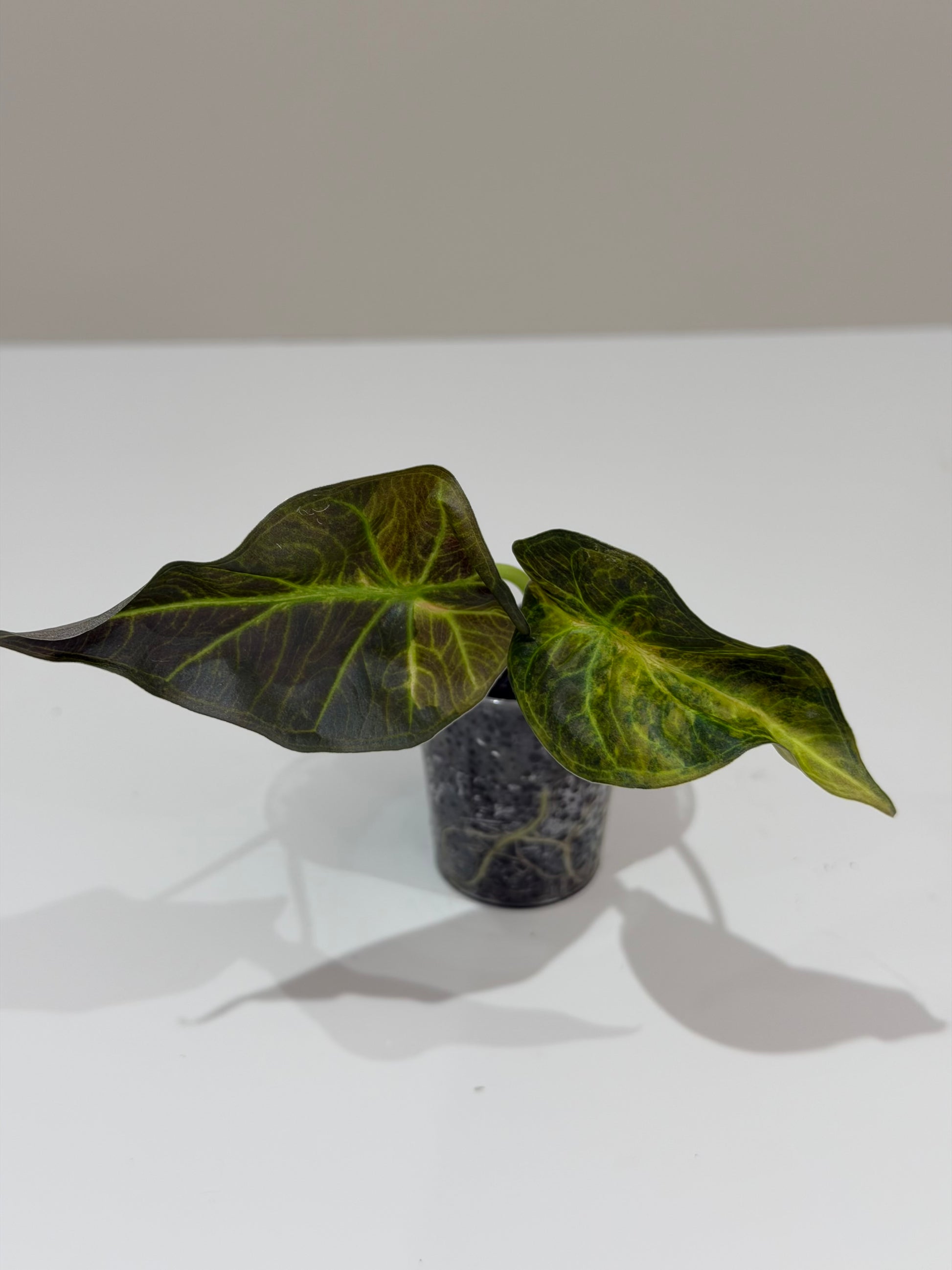 This exceptional variegated cultivar elevates the beloved Regal Shield to new heights with its rare golden variegation that transforms each leaf into a showstopping display. The combination of the signature ruffle-edged leaves, distinct veining patterns, and luminous yellow variegation creates a regal beauty that demands space to truly shine, perfect for creating that maximum jungle effect when displayed with a variety of other tropical plants around and under its umbrella-like leaves.