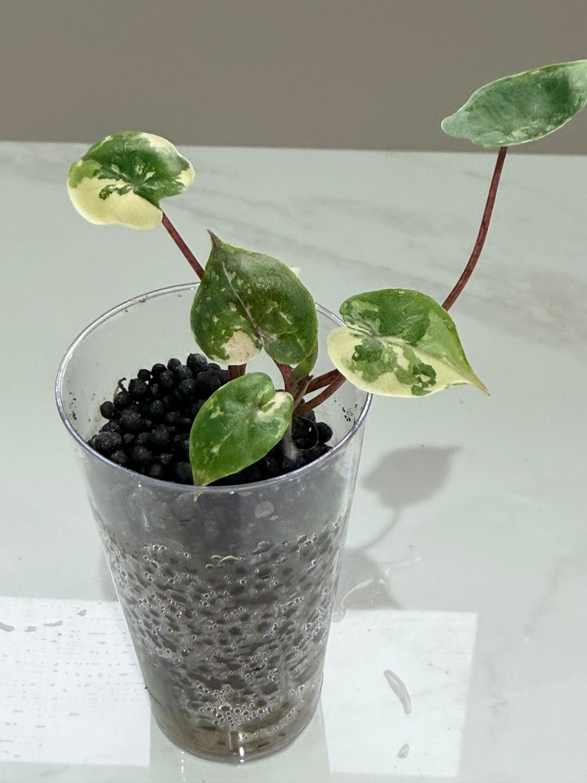 This rare and striking variety captivates dedicated enthusiasts with its unique marbling patterns that make every specimen truly one of a kind. The combination of deep green base coloration with soft pink and creamy white variegation creates a bold yet elegant aesthetic that transforms the beloved Yucatan Princess into an extraordinary collector's piece that brings sophisticated color harmony to any collection.